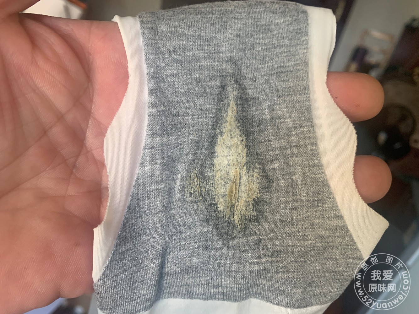 6.28,早上看她上班换裙子了,就猜到她房间有货,拿着备用钥匙就去了她房间,在卫生间洗浴水龙头上找到的,昨晚洗澡脱下的,而她却没洗,想想也够懒的了,她这样做真的就便宜我们这些原味爱好者了,这次的原味是一条冰丝内裤,无缝的那种,手感很细腻光滑,摸着就有感觉,痕迹真的太好了,像一张小嘴印在那里,味道骚而不腥,舌忝着有点咸,拍过照片后,放在嘴里一点一点的把它融化,然后狠狠的鲁了一发,没敢打在上面,都打蹲坑里了。不墨迹,上图